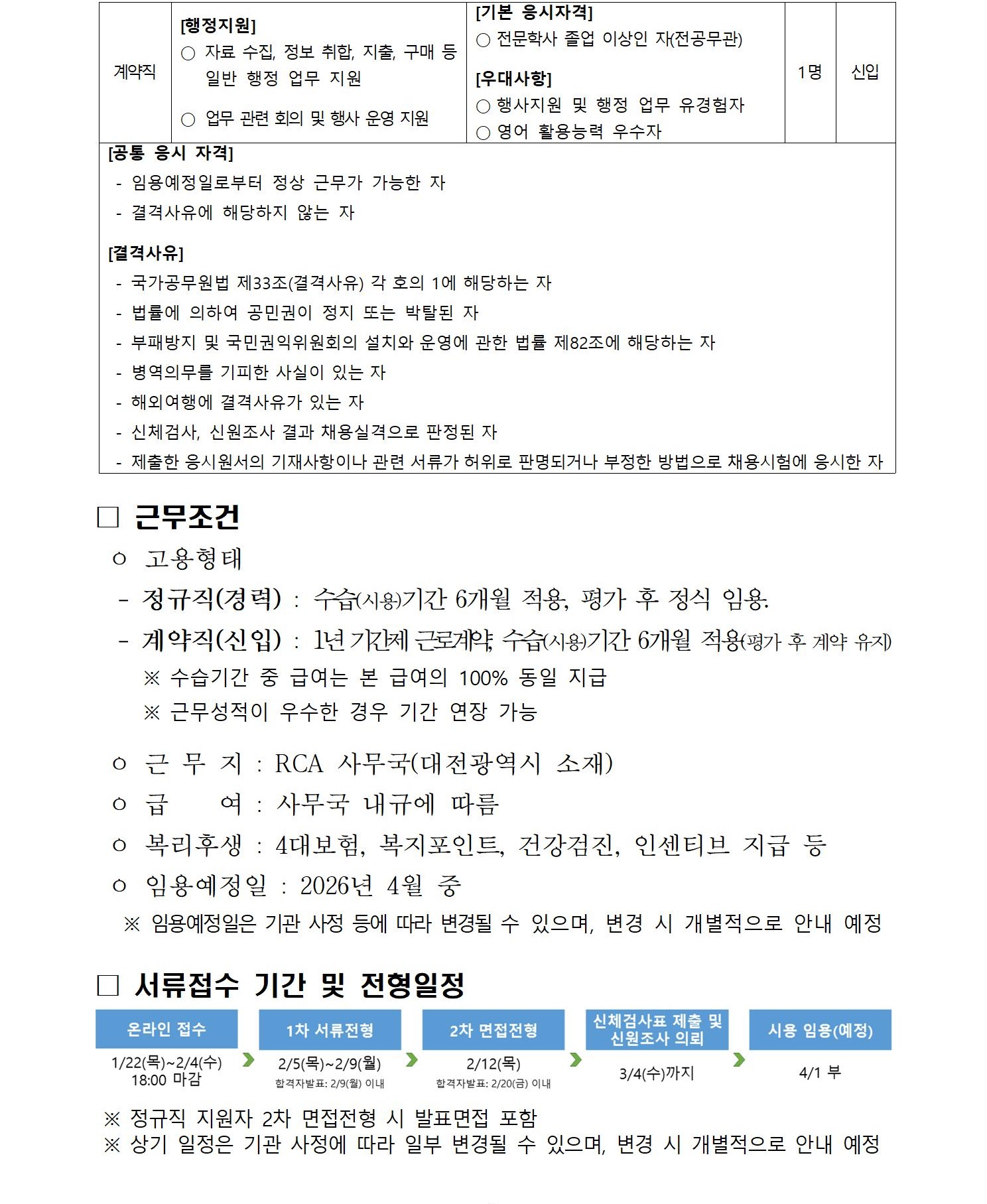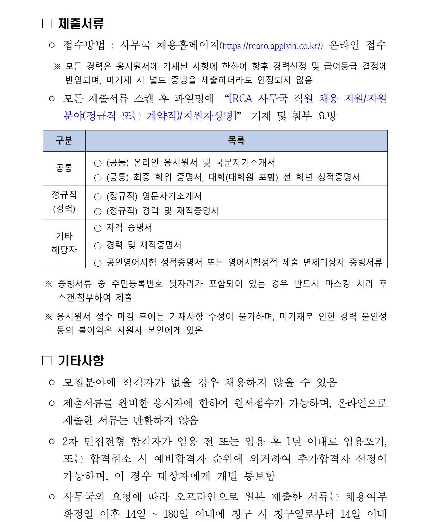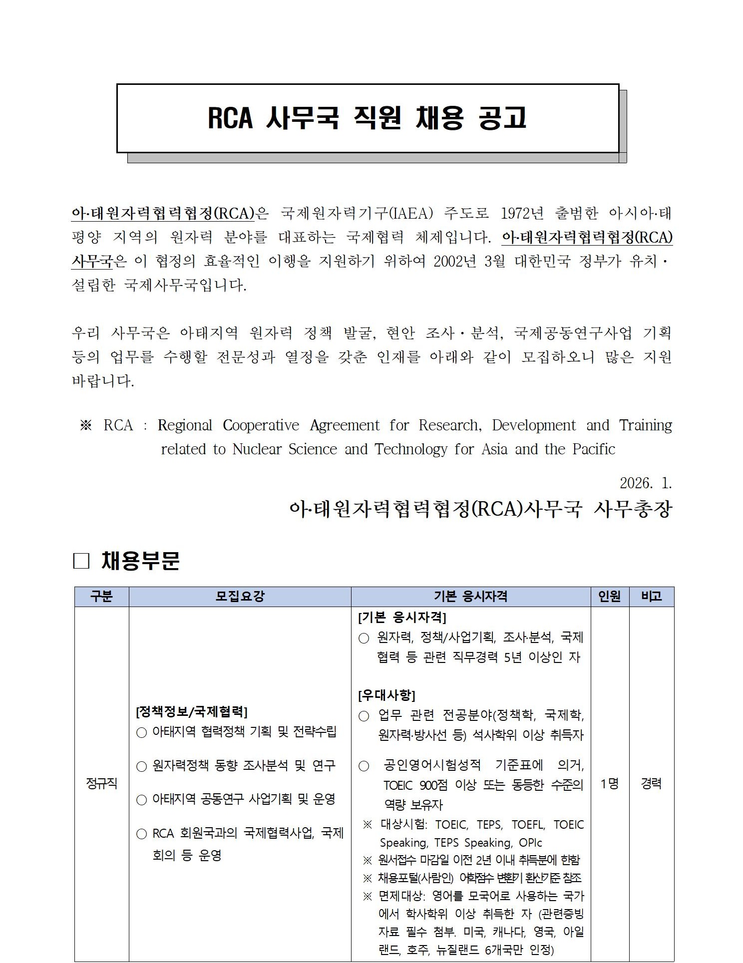 RCA 사무국 기간제계약직(국제협력) 채용 결과 안내