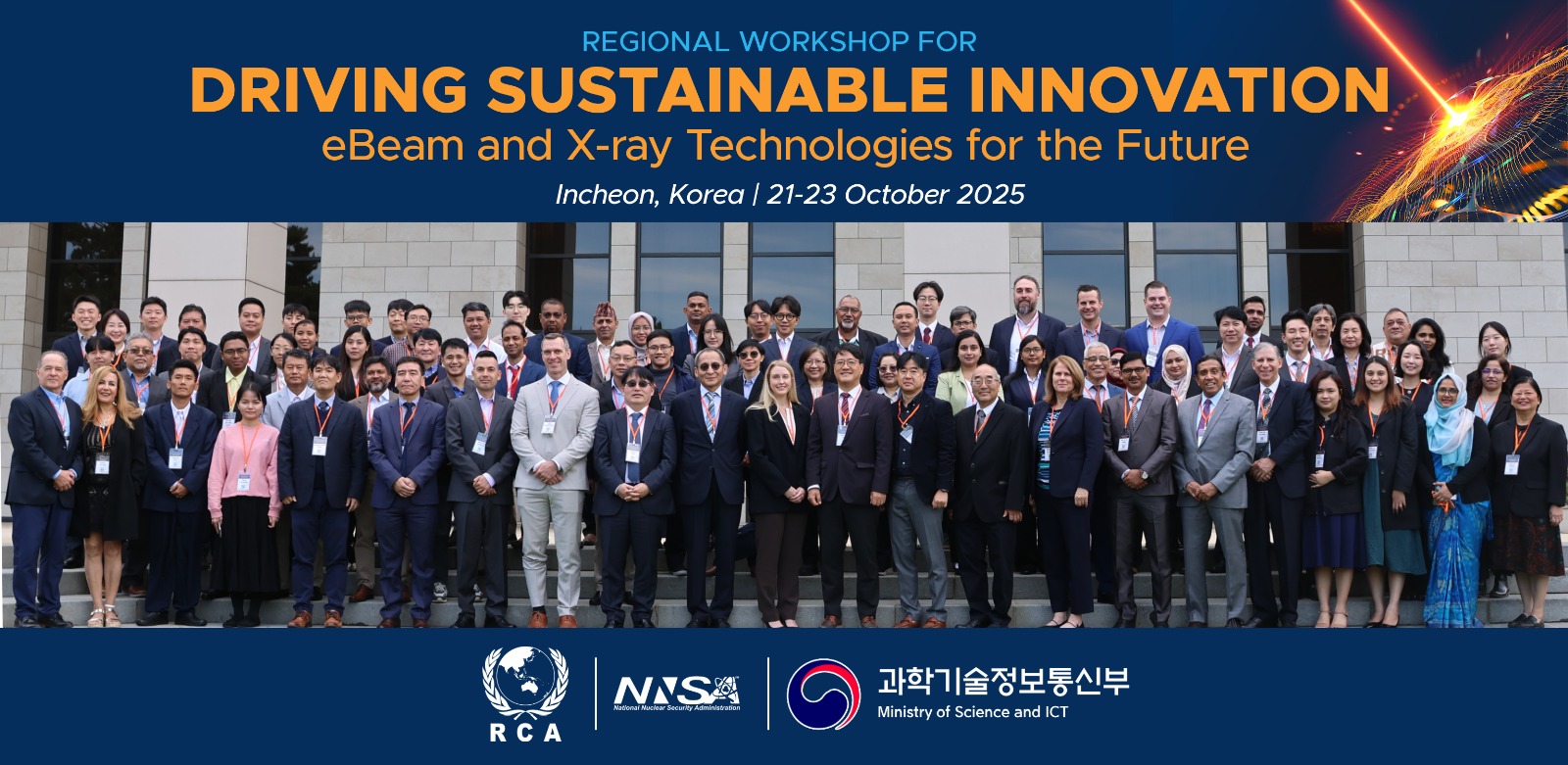 RCA 사무국(RCARO)은 2025년 10월 21일(화)부터 23일(목)까지 대한민국 인천에서 지속가능한 혁신을 위한 전자빔 기술활용 국제워크숍(Regional Workshop for Driving Sustainable Innovation: eBeam and X-ray Technologies for the Future)을 개최하였습니다.