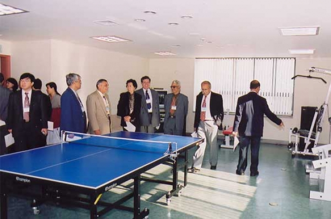 III. Opening of RCA Regional Office - 9. Representatives from missions in Vienna (from left Mr Yong-Hwan KIM, Korea; Mr Suhartono ZAHIR, Indonesia; Mr DENG Ghe, China and Mr Toshio KANEKO, Japan) posing at the Regional Office sign structure that was just unveiled (Daejeon, 27 March 2002)